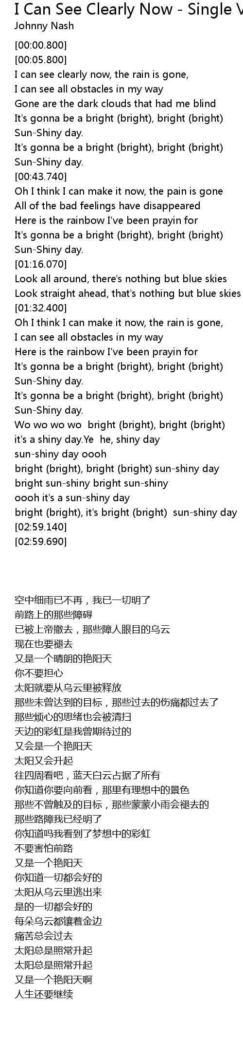 I can see clearly now, the rain is gone, |