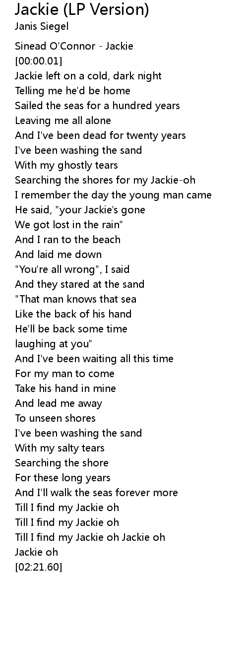 Till I find my Jackie oh |