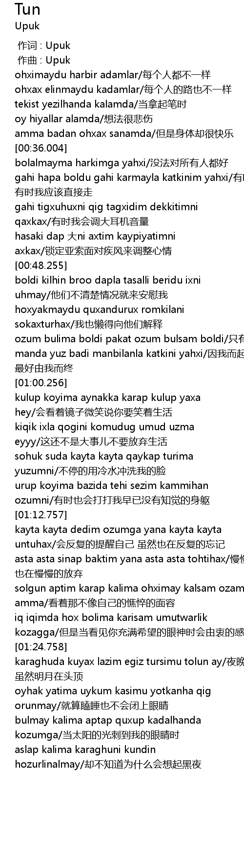 | [00:01.000] | zuo qu : Upuk |