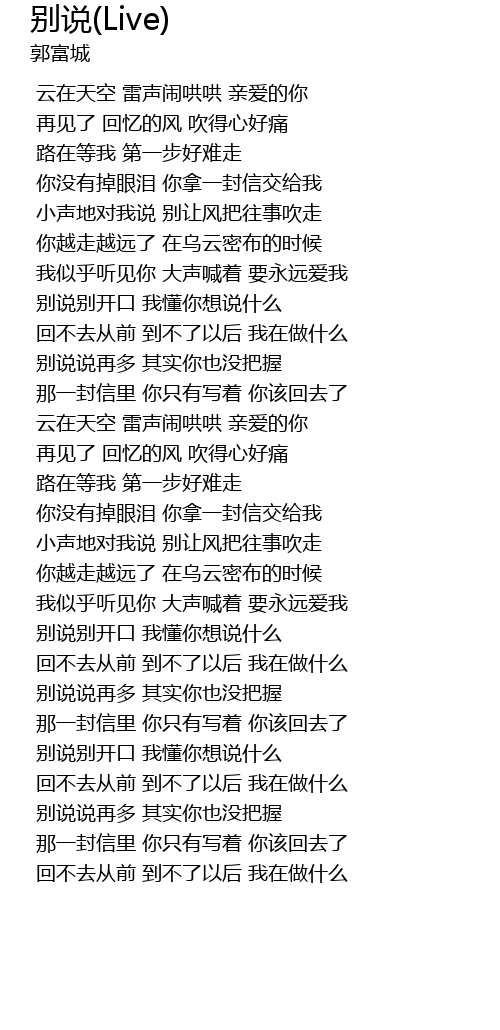 | Song | 别说(Live) |