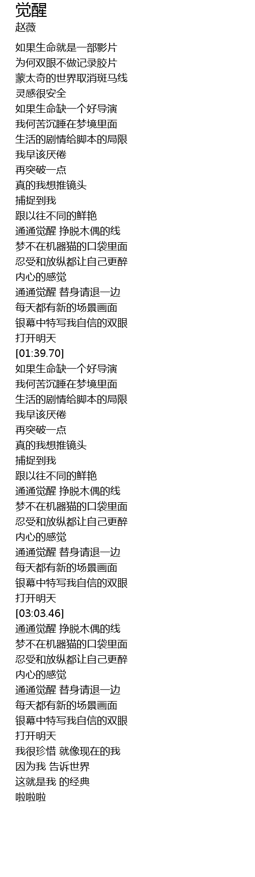 | [03:15.68] | 通通觉醒 挣脱木偶的线 |