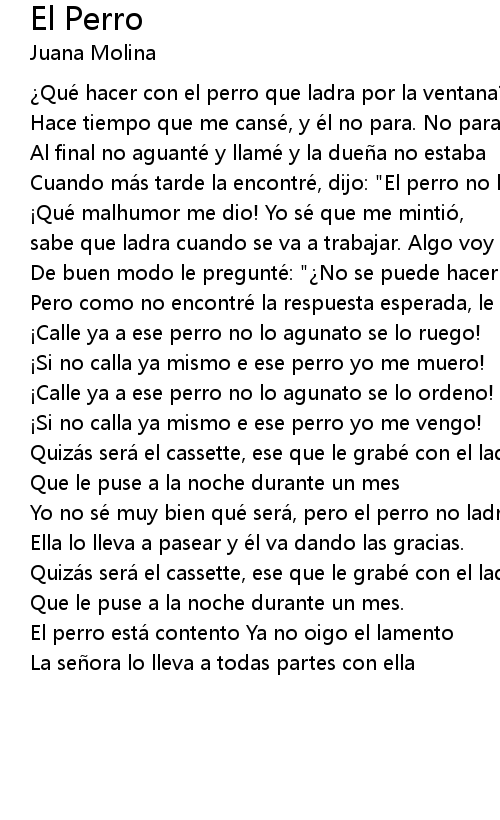| El perro está contento Ya no oigo el lamento | |