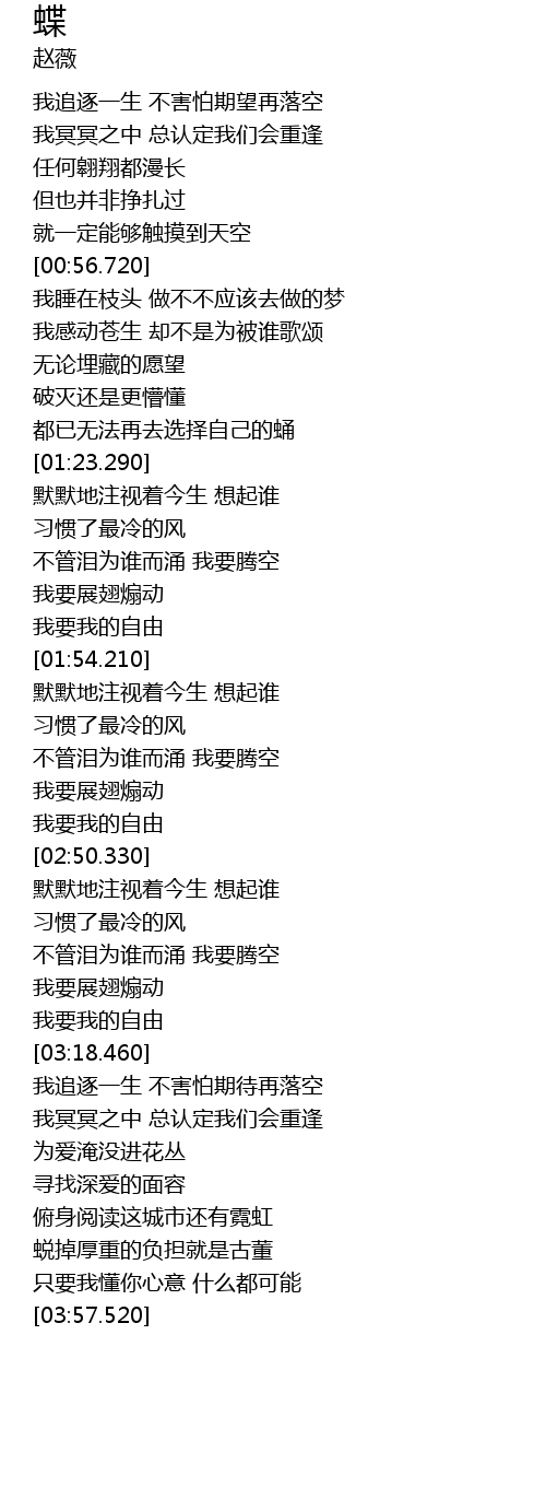 | [03:14.740] | wǒ yào wǒ de zì yóu |