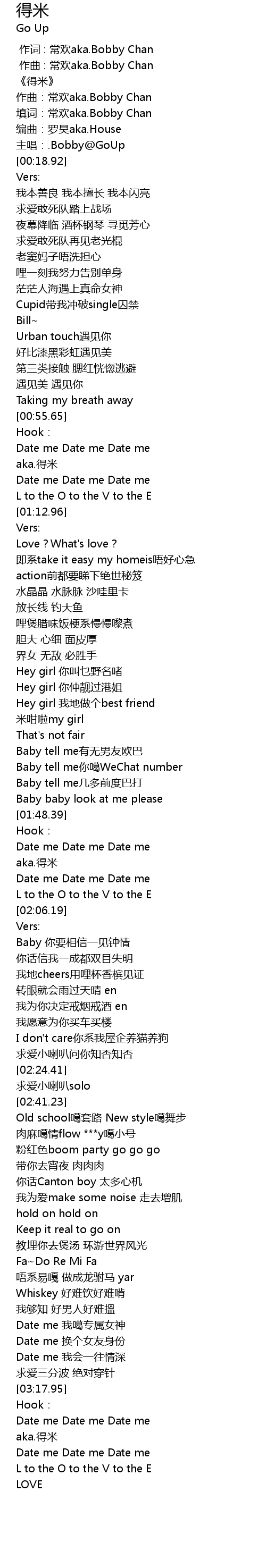 | [00:15.97] | 主唱:.Bobby@GoUp |