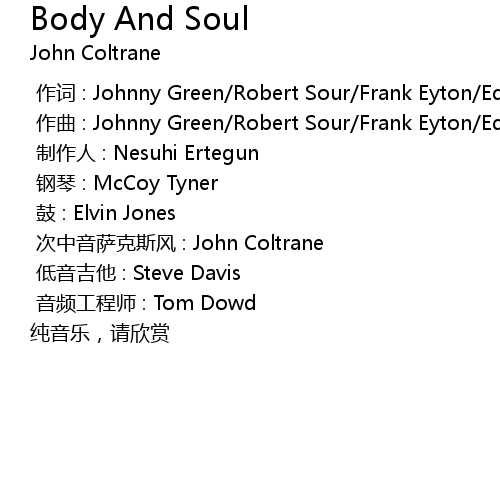 | [00:05.000] | 次中音萨克斯风 : John Coltrane |