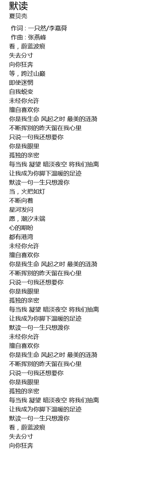 | [02:57.649] | mò dú yī jù yī shēng zhǐ xiǎng dù nǐ |