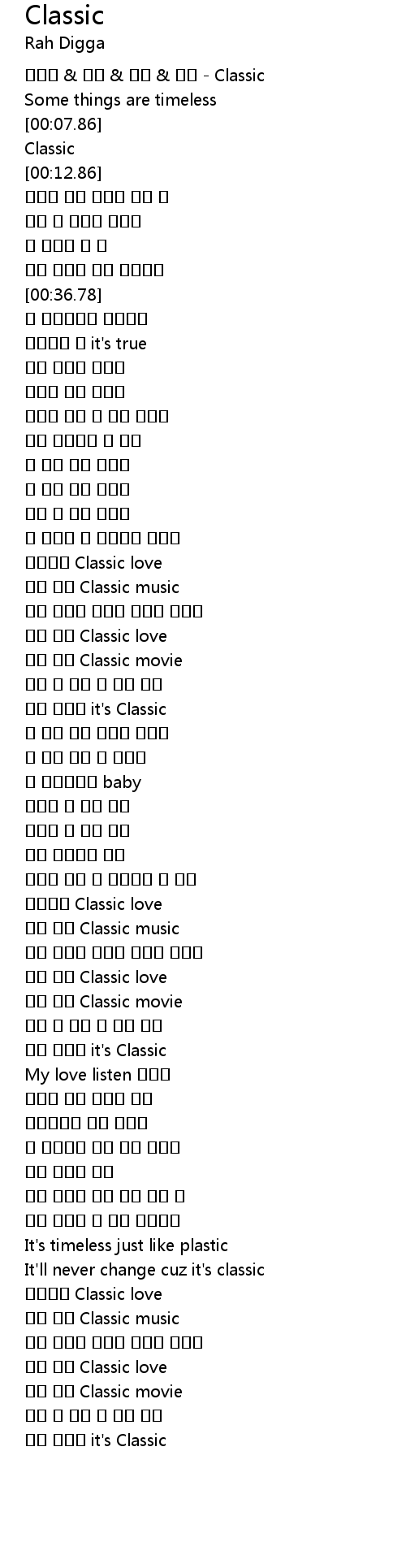 | [03:01.20] | It' ll never change cuz it' s classic |