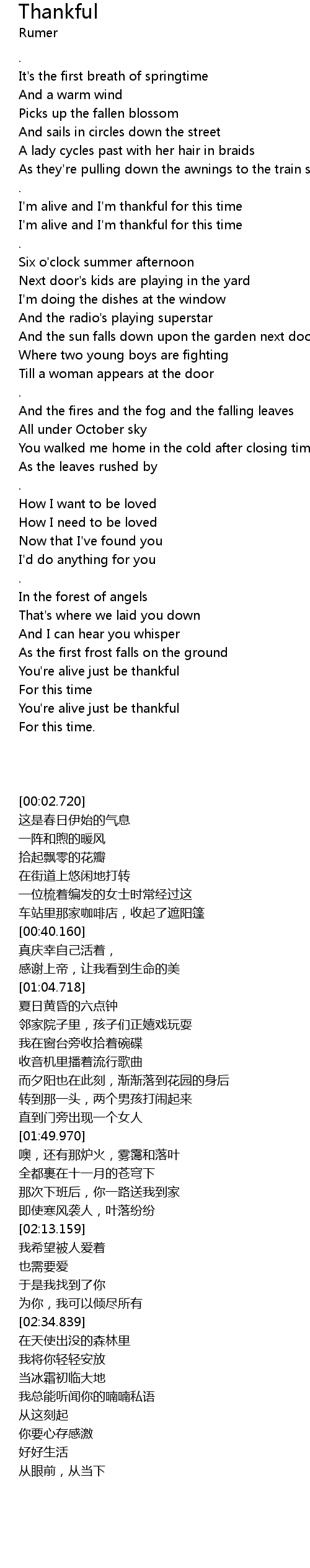 | [00:45.100] | I'm alive and I'm thankful for this time |
