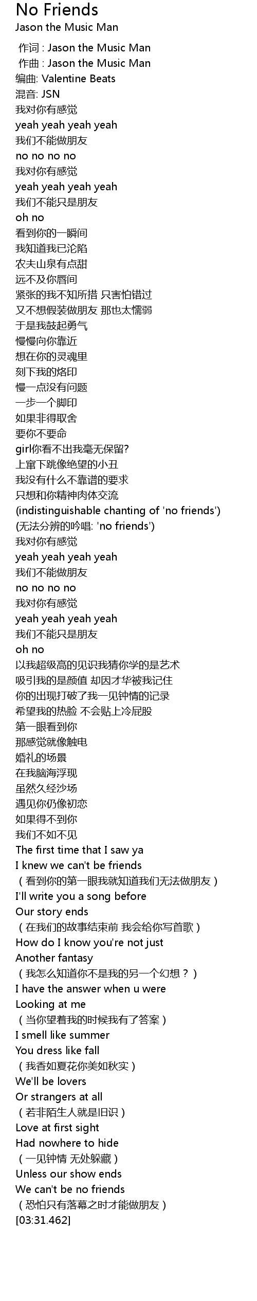 | [01:52.233] | (无法分辨的吟唱: 'no friends') |