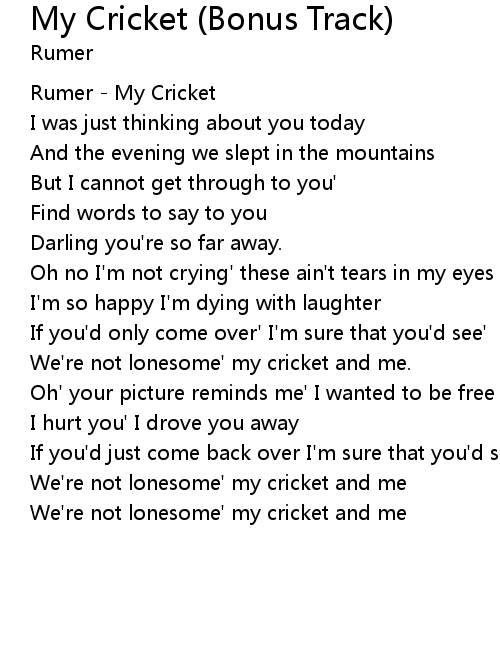 We're not lonesome' my cricket and me |