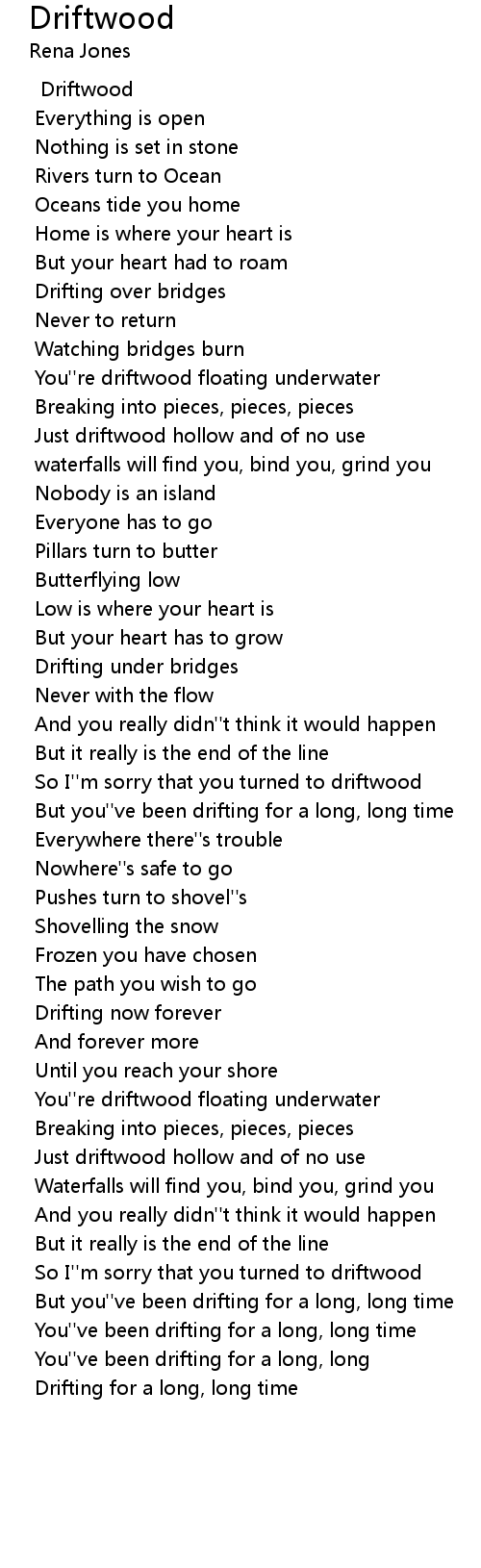 So I''m sorry that you turned to driftwood |