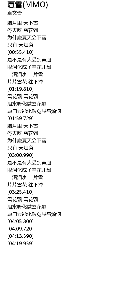 | [03:41.400] | 泪水呀化做雪花飘 |