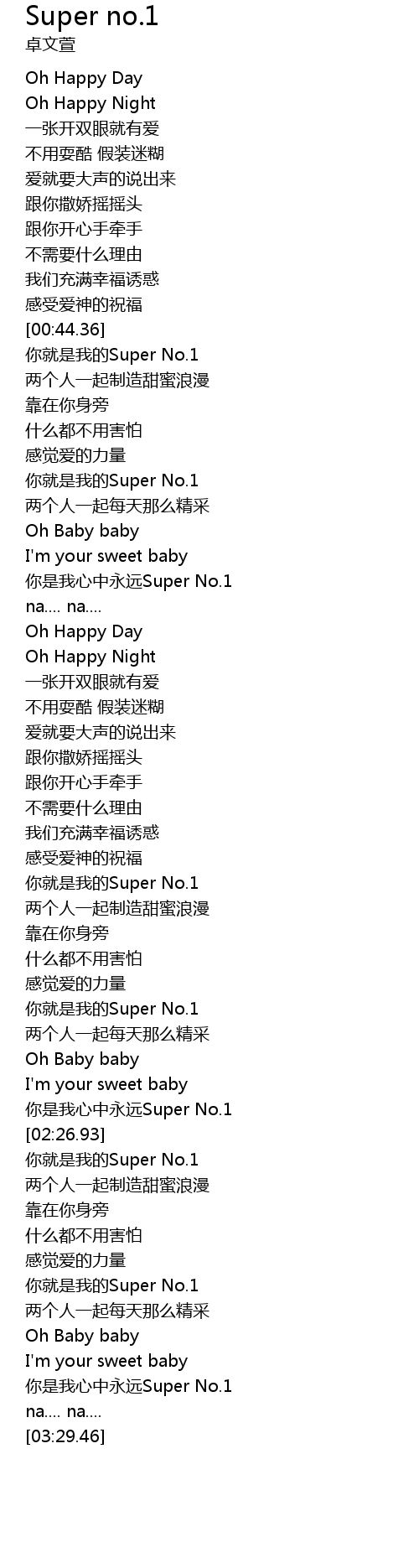 | [02:54.78] | nǐ jiù shì wǒ de Super No. 1 |