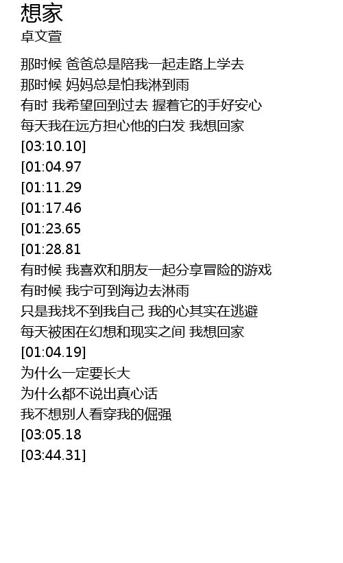 | [03:35.95][03:05.18] | 我真的好想要回家 |