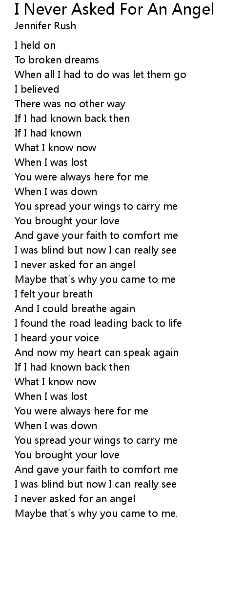 | I never asked for an angel | |