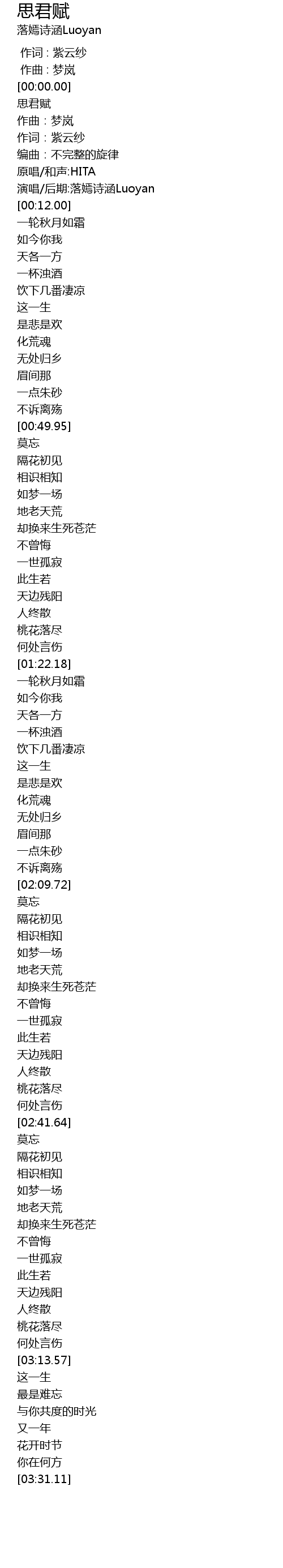 | [00:00.10] | 思君赋 |