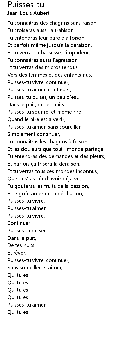 | Song | Puisses-tu |