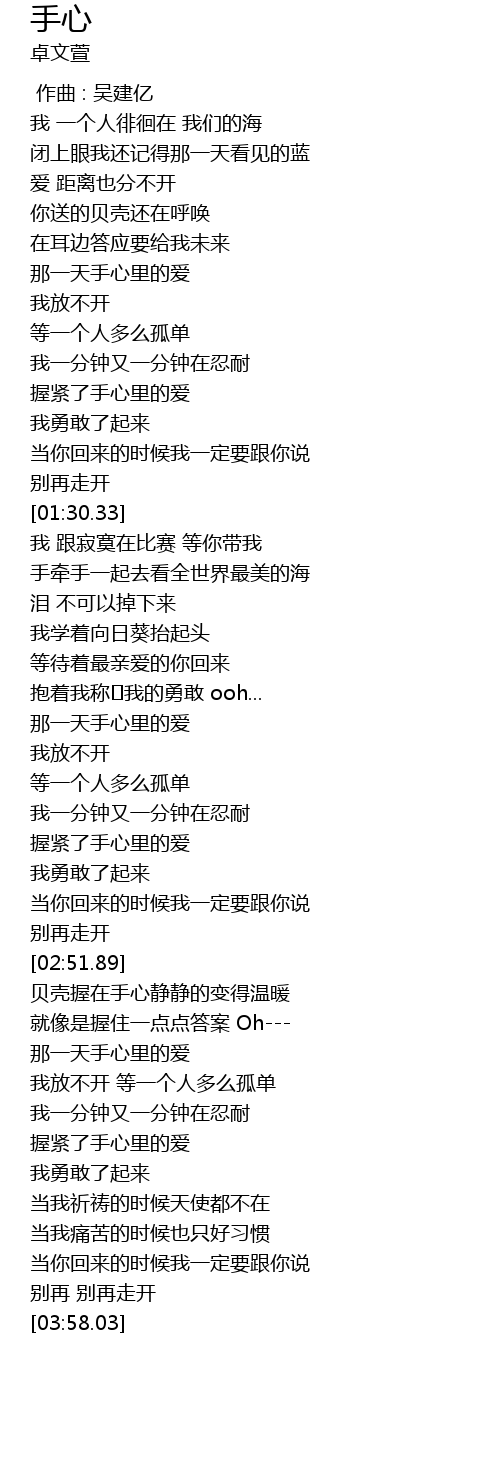 | [03:10.19] | nà yì tiān shǒu xīn lǐ de ài |