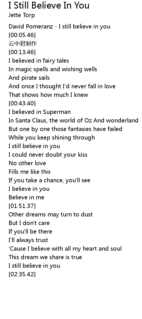 | [01:14.19] | I still believe in you |