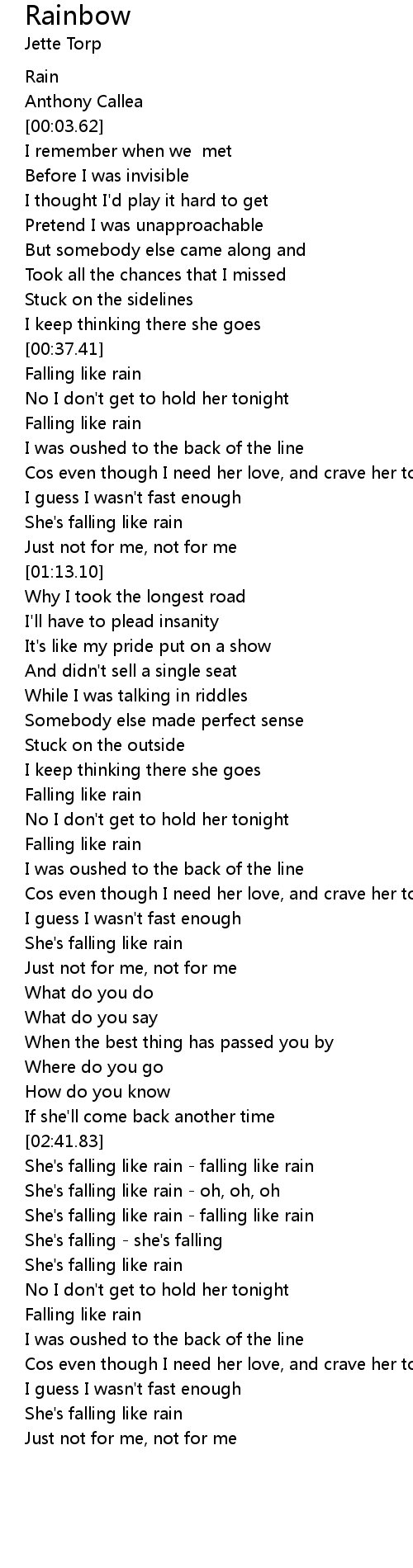 She's falling like rain - falling like rain |