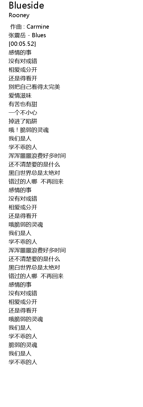 | [00:00.22] | 张震岳 - Blues |