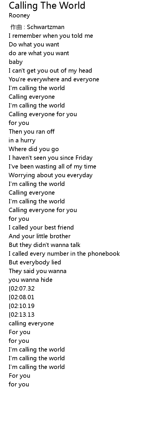 | [00:31.53] | I' m calling the world |