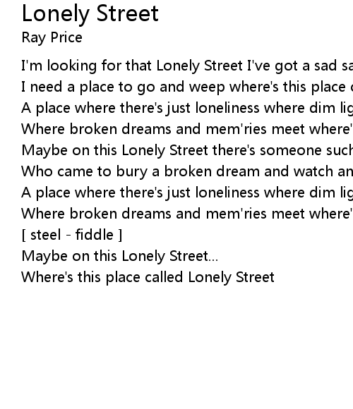I'm looking for that Lonely Street I've got a sad sad tale to tell |