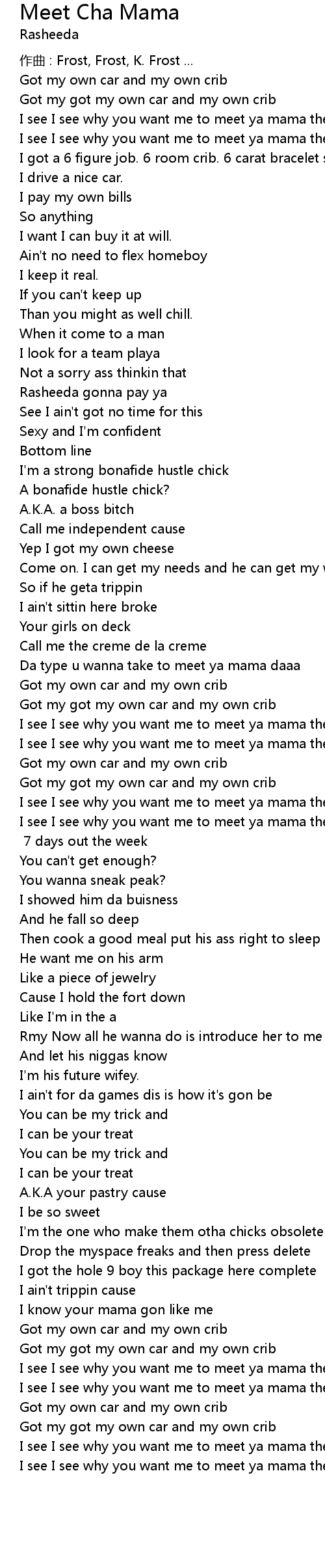 | Song | Meet Cha Mama |