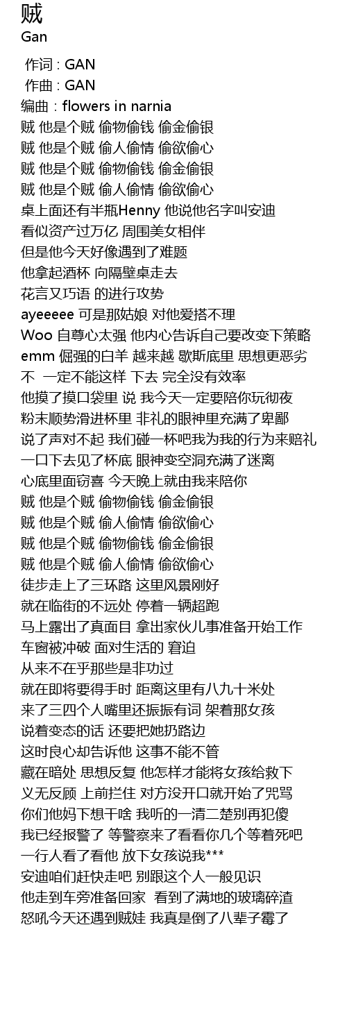 | [00:36.960] | zéi tā shì gè zéi tōu wù tōu qián tōu jīn tōu yín |