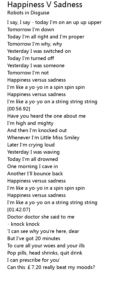 | [01:31.34] | Happiness versus sadness |
