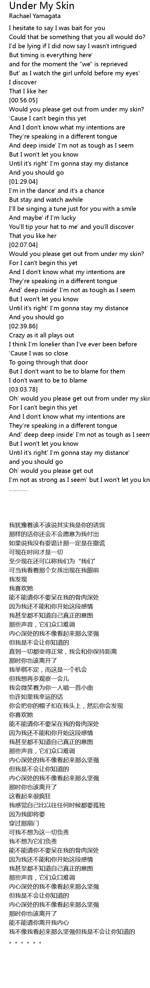 | [03:04.00] | Oh' would you please get out from under my skin? |