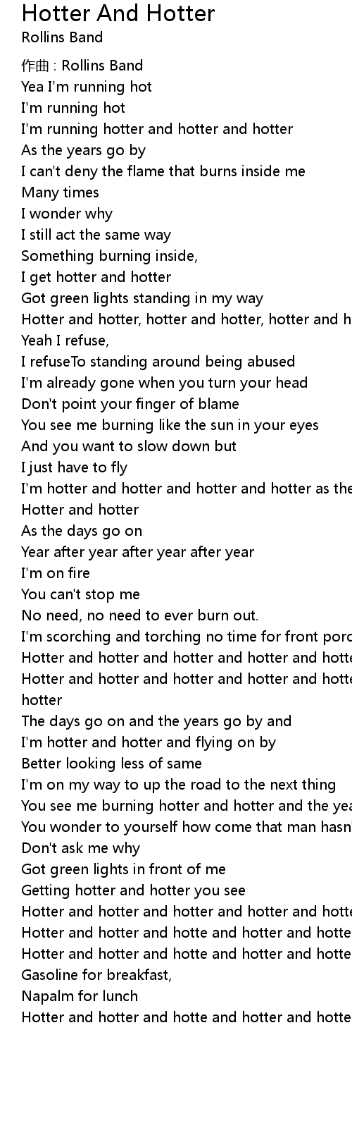 | Hotter and hotter and hotte and hotter and hotter yea yea yea |