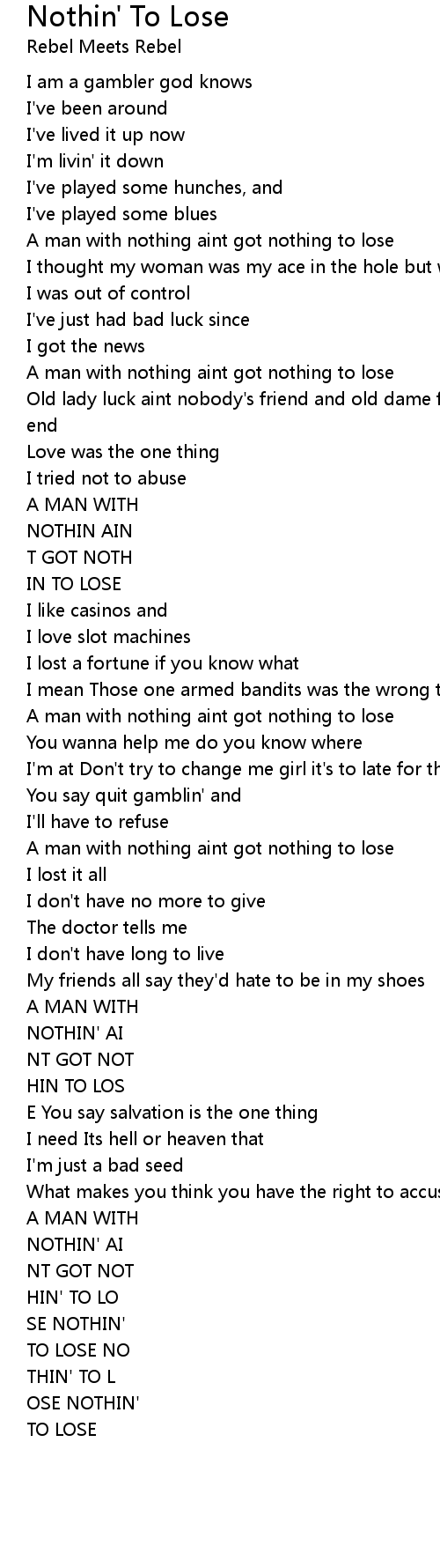 A man with nothing aint got nothing to lose |