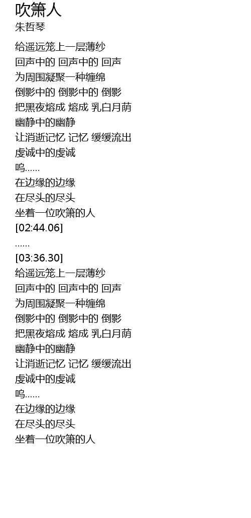 | [02:24.93] | 坐着一位吹箫的人 |