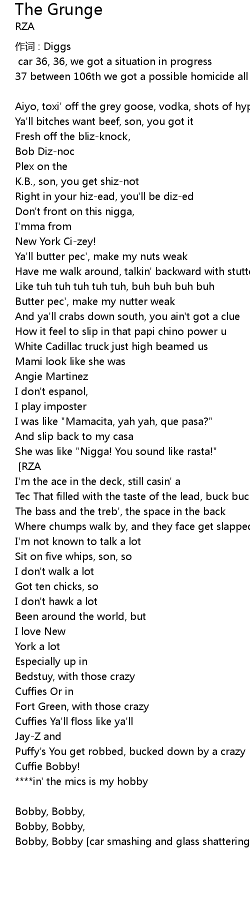 | (feat. Beretta 9) [Intro: Beretta 9] car 36, 36, we got a situation in progress 37 between 106th we got a possible homicide all cars, all cars, we got a situation down [RZA] | |