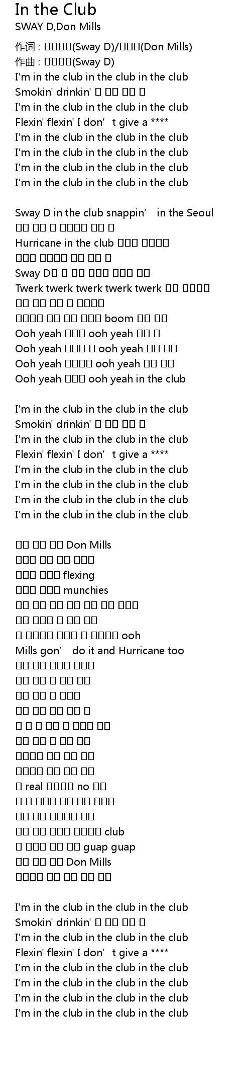 | I' m in the club in the club in the club |