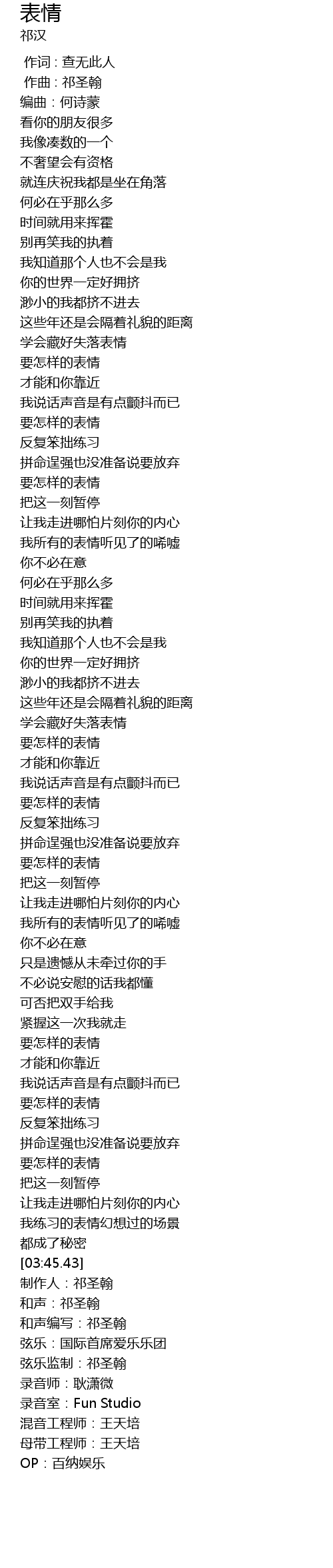 | [02:42.44] | yào zěn yàng de biǎo qíng |
