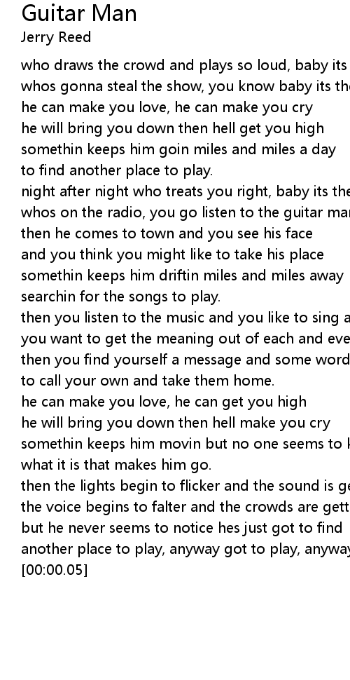 [00:20] whos gonna steal the show, you know baby its the guitar man