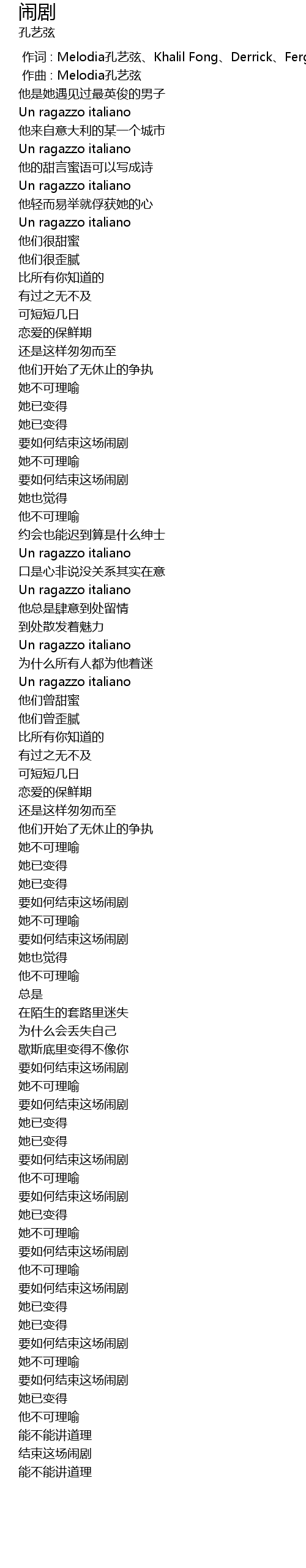 | [00:00.000] | 作词 : Melodia孔艺弦、Khalil Fong、Derrick、Fergus |