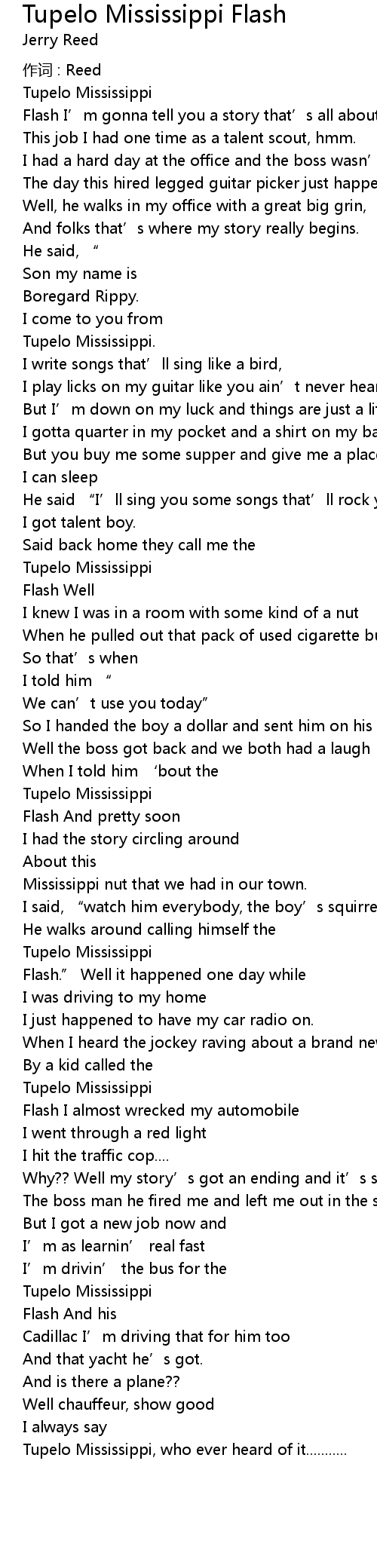 | Song | Tupelo Mississippi Flash |