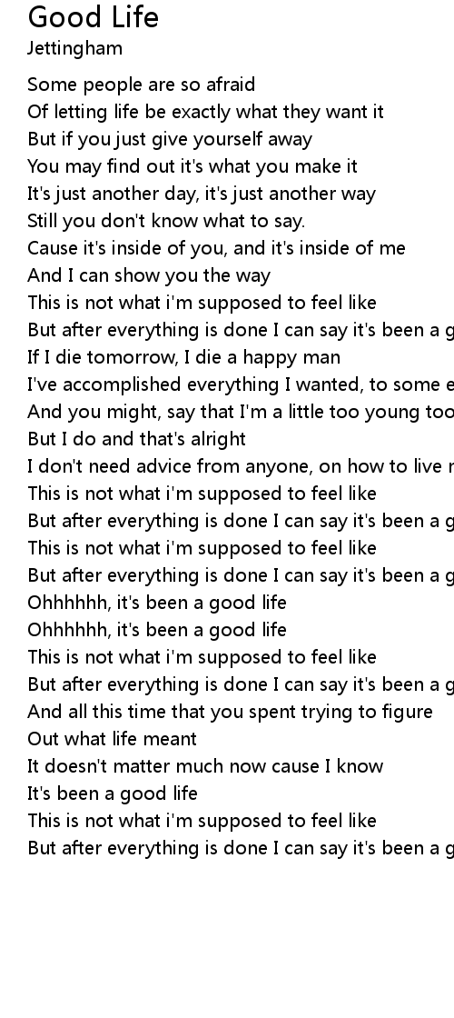 But after everything is done I can say it's been a good life |