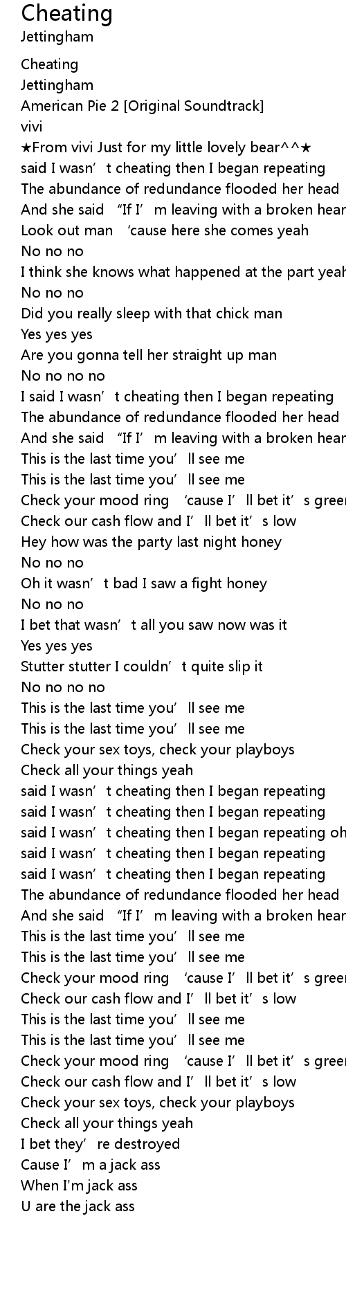 | [02:33.05] | said I wasn' t cheating then I began repeating oh... |