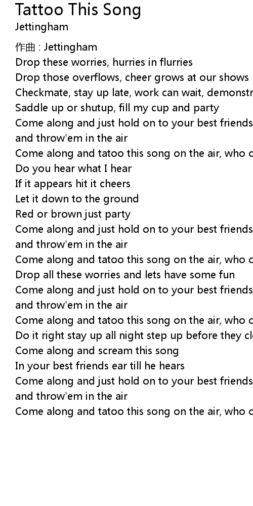 | Come along and tatoo this song on the air, who cares |