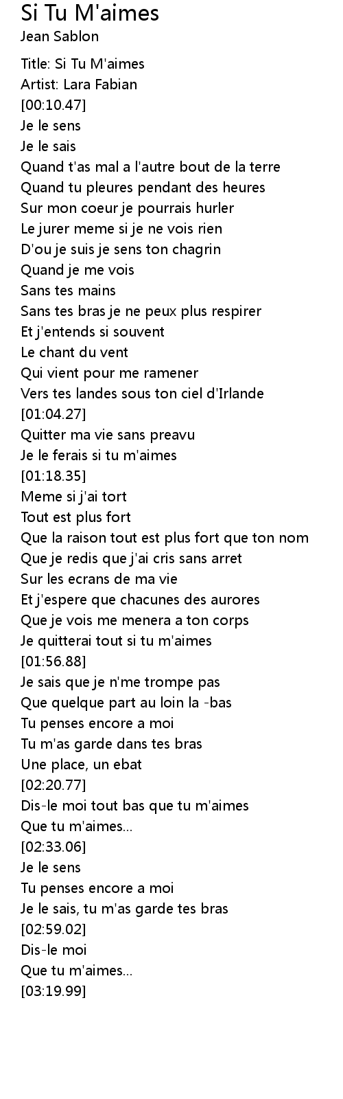 Title: Si Tu M'aimes |