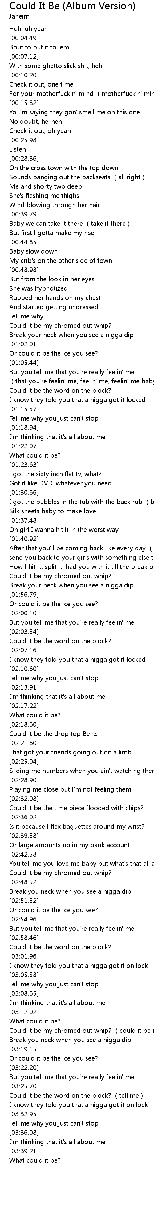 | [03:13.90] | Could it be my chromed out whip? (could it be my chromed out whip) |