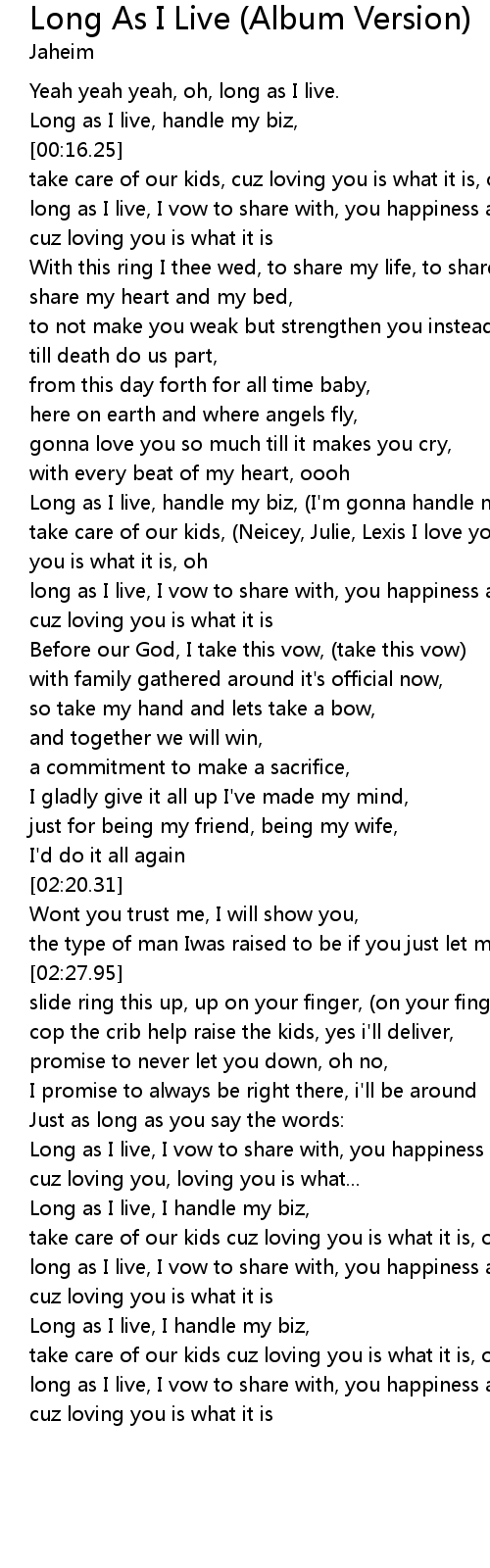 Yeah yeah yeah, oh, long as I live. |