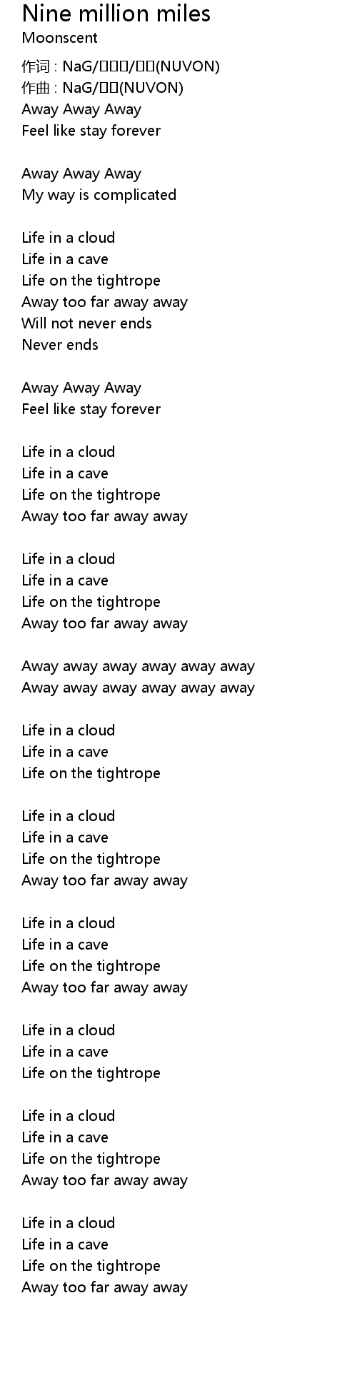 | Away too far away away | |