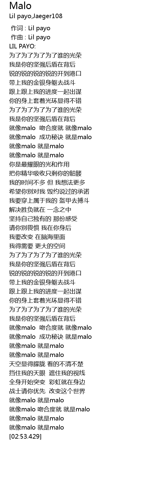 | [00:53.953] | 就像malo 吻合度就 就像malo |