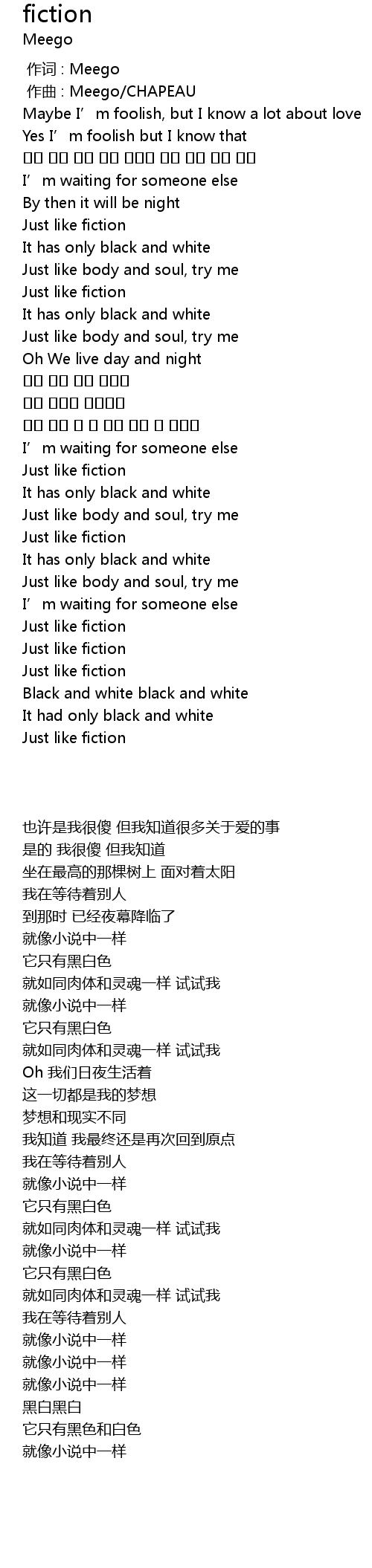 | [00:00.000] | 作词 : Meego |