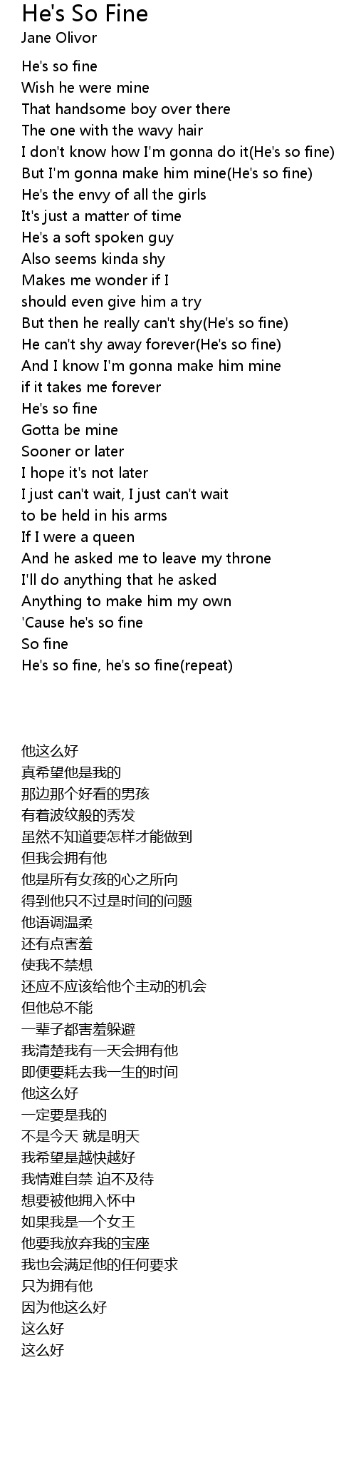 He's so fine, he's so fine(repeat) |